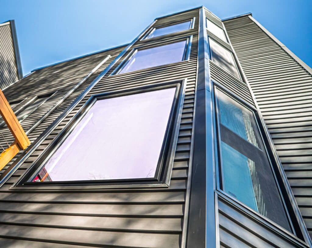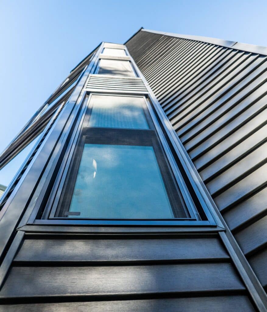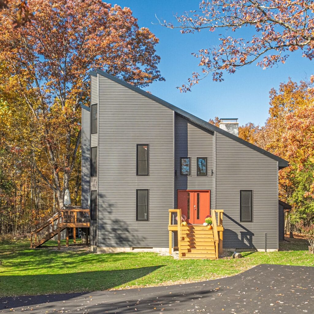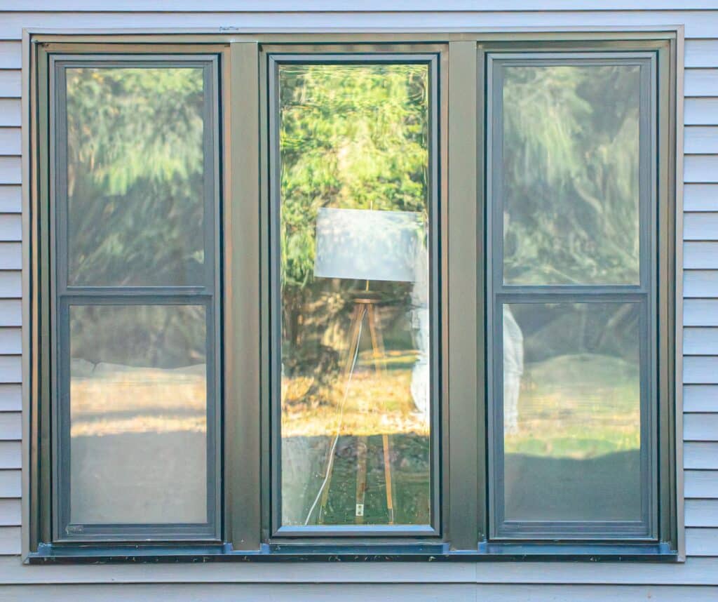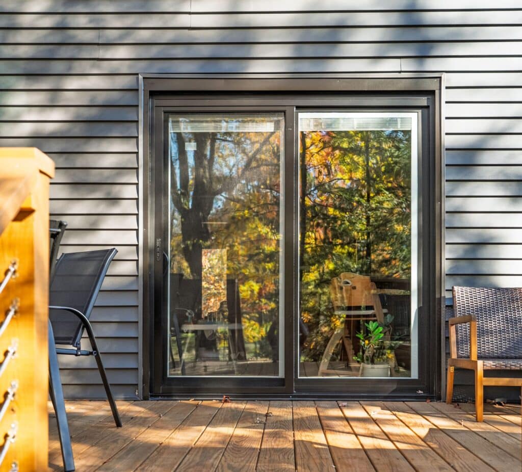 This project was also located in Meadville. We installed new windows and a patio door. The installation included a new exterior wrap/cladding to match the black windows. Products installed: ProVia Endure Series replacement windows (double hung and picture windows) in black. ProVia Endure Series sliding patio door in black, featuring white internal blinds.